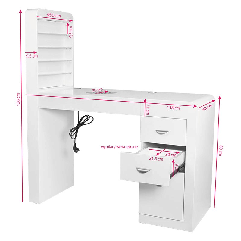 Kosmetiktisch 310 mit Kassettabsorber, weiß, links